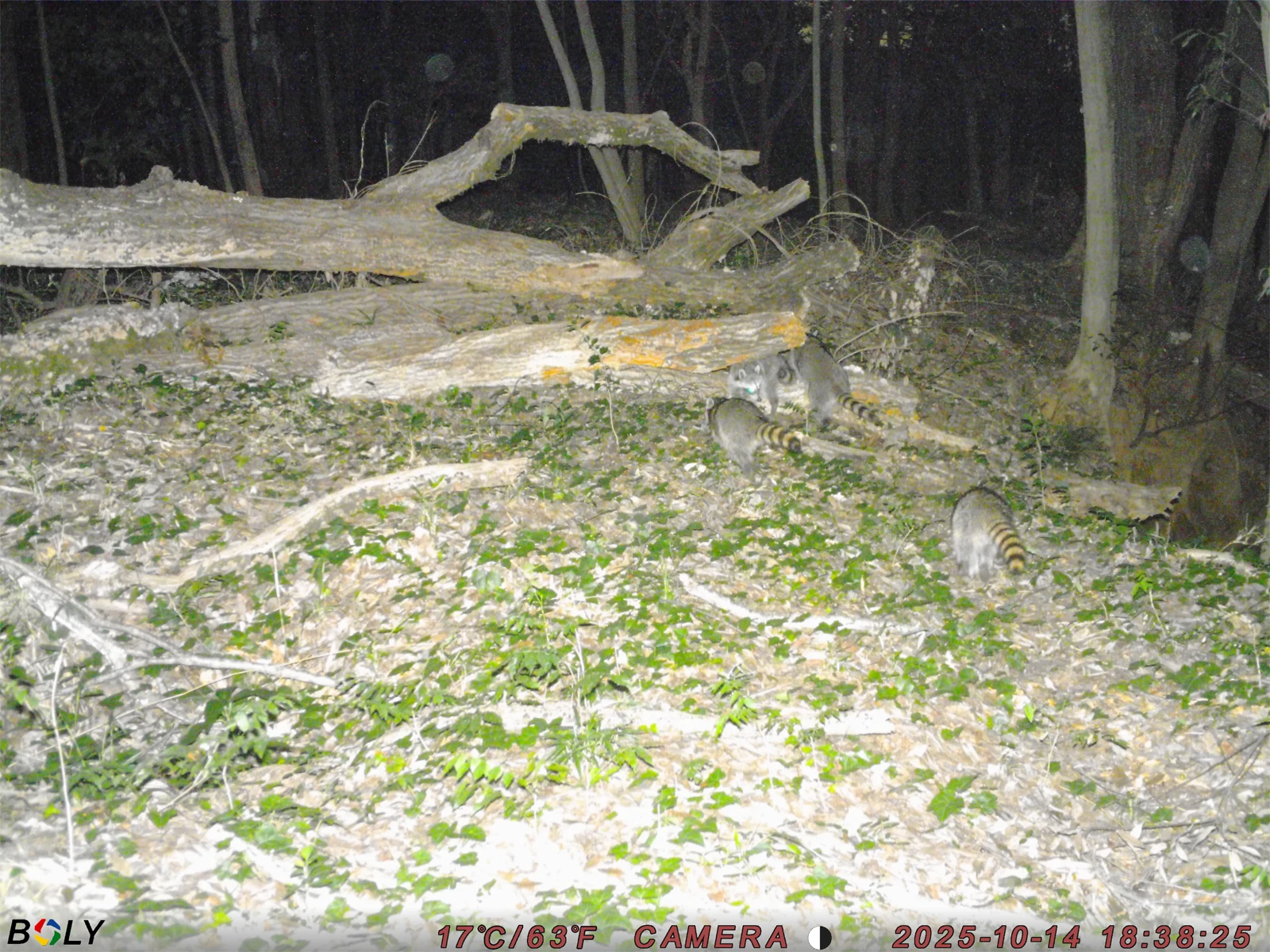 | 主な結果 | 夜間カラーモードは、アライグマやタヌキといった比較的明かりに慣れた動物の体毛の色や行動をカラーで記録できました。一方、アナグマやハクビシンのような警戒心の強い動物には、ノーグローモードを使用することで回避行動を抑え、安定した記録が得られました。 |