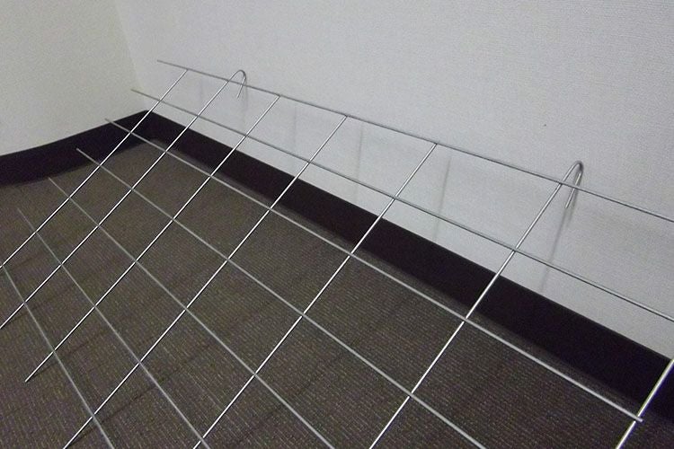 【既設柵の地際補強資材】ネット・金網・ワイヤーメッシュ柵用くぐり抜け防止 メッシュパネル(メッキ仕様)は、既設柵の地際補強に適した、高強度のワイヤーメッシュパネルです(メッキ仕様)。既設柵にフック部をかけることで野生動物が柵に近寄りづらくなるため、柵の持ち上げや地際の掘り返しを防ぐことができます。