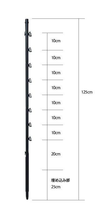 【対象:イノシシ、ハクビシン、アライグマ、クマ等】 ガイシが不要で設置の手間が大幅に軽減。FRPの強さとPPの柔軟性をあわせ持つ高品質ポール。 サイズ:20mm径×長さ125cm 地上部高さ : 100cm