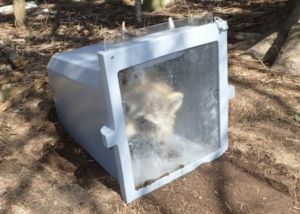 捕獲したアライグマを輸送する際、箱わな内部から攻撃される恐れがあります。