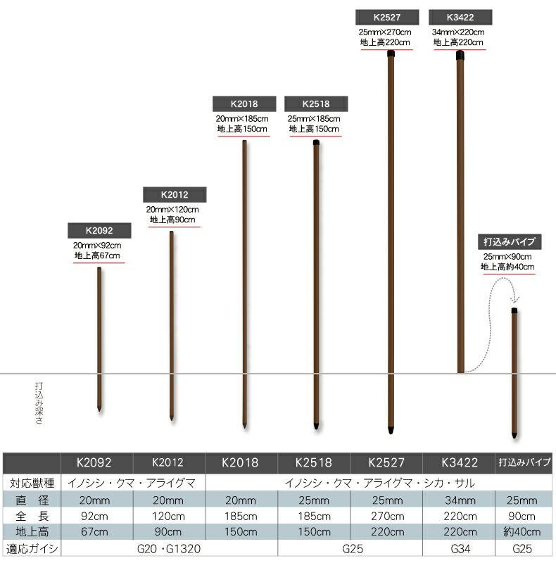 樹脂被覆鋼管支柱 K3422(打ち込みパイプ付き)(5本入)(旧:サルポール2)
