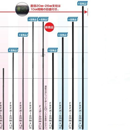 FRPポール直径26㎜長さ2.1m(30本セット)