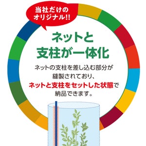 ネットと支柱が一体化で組み立て簡単。素材が柔らかく、優れた耐候性と大きな間口が特徴です。