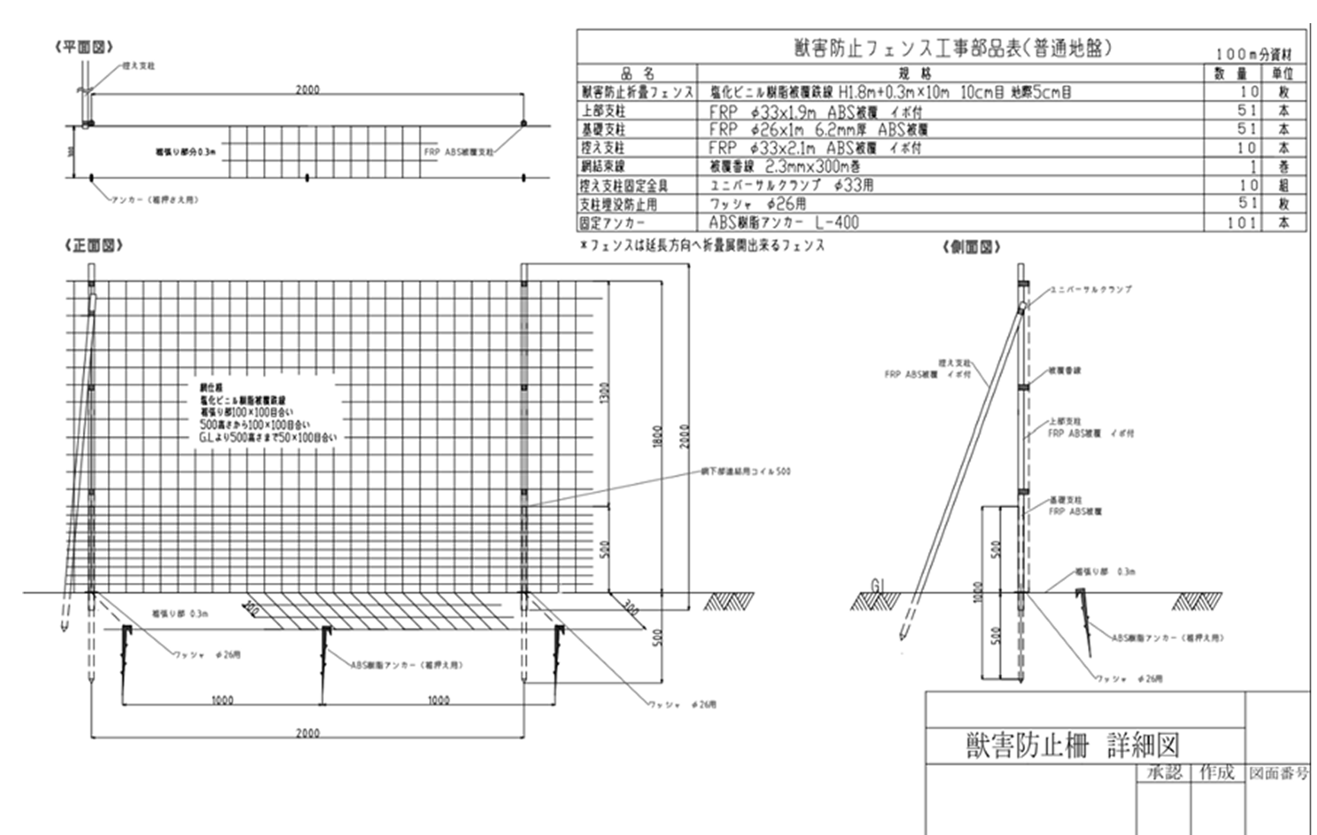 フェンス100m分 資材一式 |