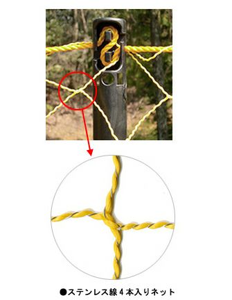 シカ食害・イノシシ対策に有効!ステンレス線入り防獣ネット「アニマルネット2」の60m資材セットです