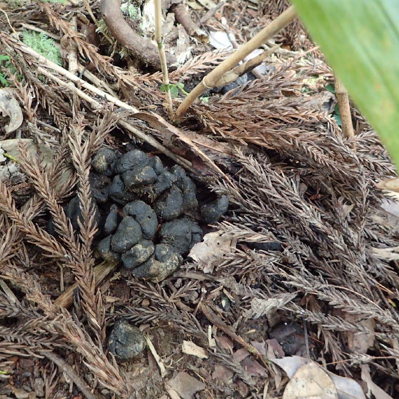 - つがいや家族は尾根道や竹藪の中、林内の同じ場所にフンをする習性がある。