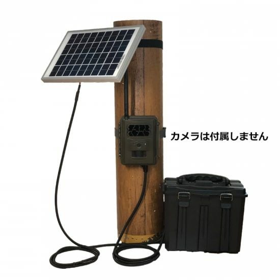 ソーラーパネル+大容量バッテリーでトレイルカメラの動作時間を大幅に伸ばすことができる外部バッテリーシステムです。